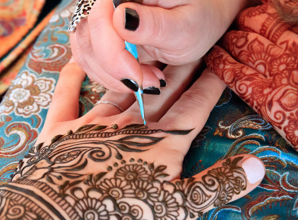 Our skilled mehendi artists create beautiful bridal and guest designs using natural henna with intricate patterns and long-lasting color.